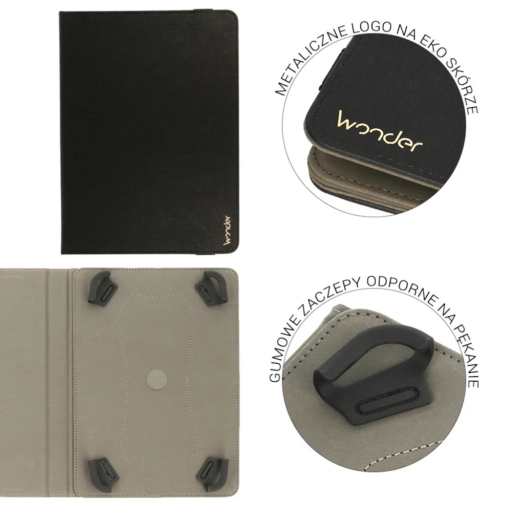 Wonder Bőr Tablet Fliptok - egy elegáns és modern fliptok, amely kiváló védelmet nyújt készülékünknek. Kiváló minőségű anyagokból készül, különös figyelemmel minden részletre. A fliptok rugalmas fogantyúkkal van ellátva, amelyek a tablet méreteihez igazodnak. A termék puha belső résszel rendelkezik, amely megvédi a képernyőt a karcolásoktól. Ezenkívül, ha megfelelően hajtogatjuk, állványként szolgál a kényelmes fotó- vagy videónézéshez. A tokban szabad hozzáférés van az összes porthoz és gombhoz. Nincs szükség a tok eltávolítására a töltő csatlakoztatásához vagy bármelyik oldalsó billentyű megnyomásához.