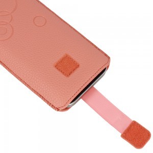 A telefon a tok tetejéről csúsztatható be, és a tépőzáras zárás megakadályozza a kicsúszást. A tok belsejében található PULL-UP pánt segítségével gyorsan és egyszerűen kiemelheti telefonját. A kapcson domborított logó elegáns megjelenést kölcsönöz.