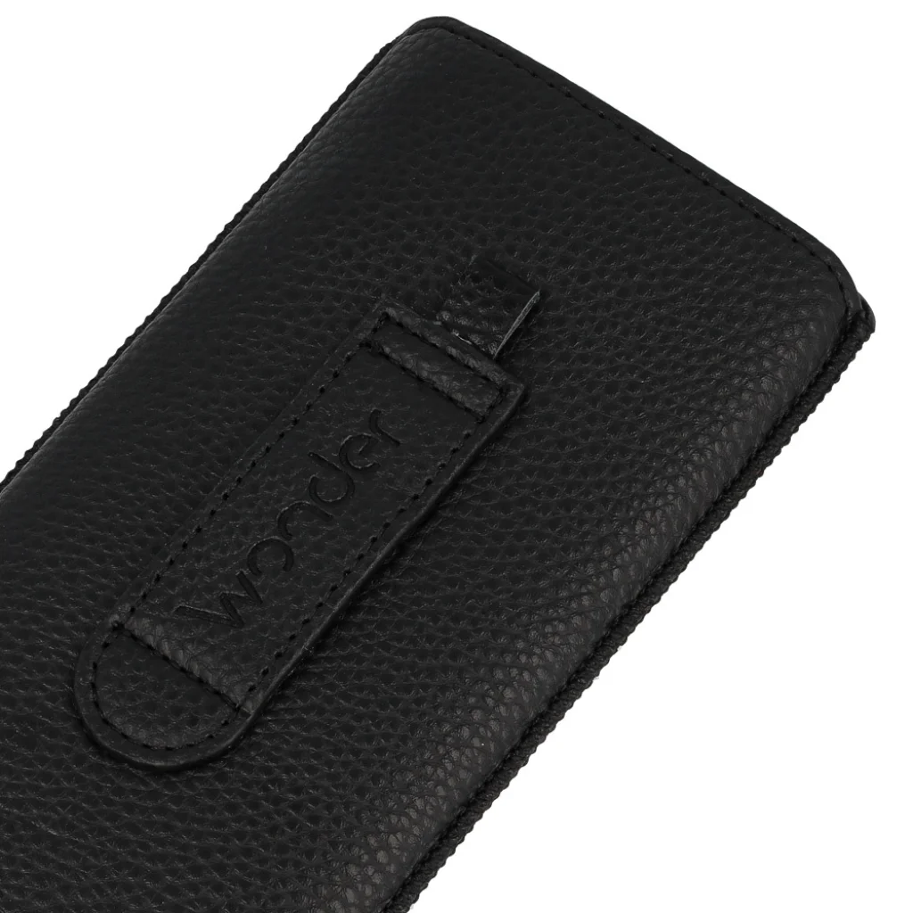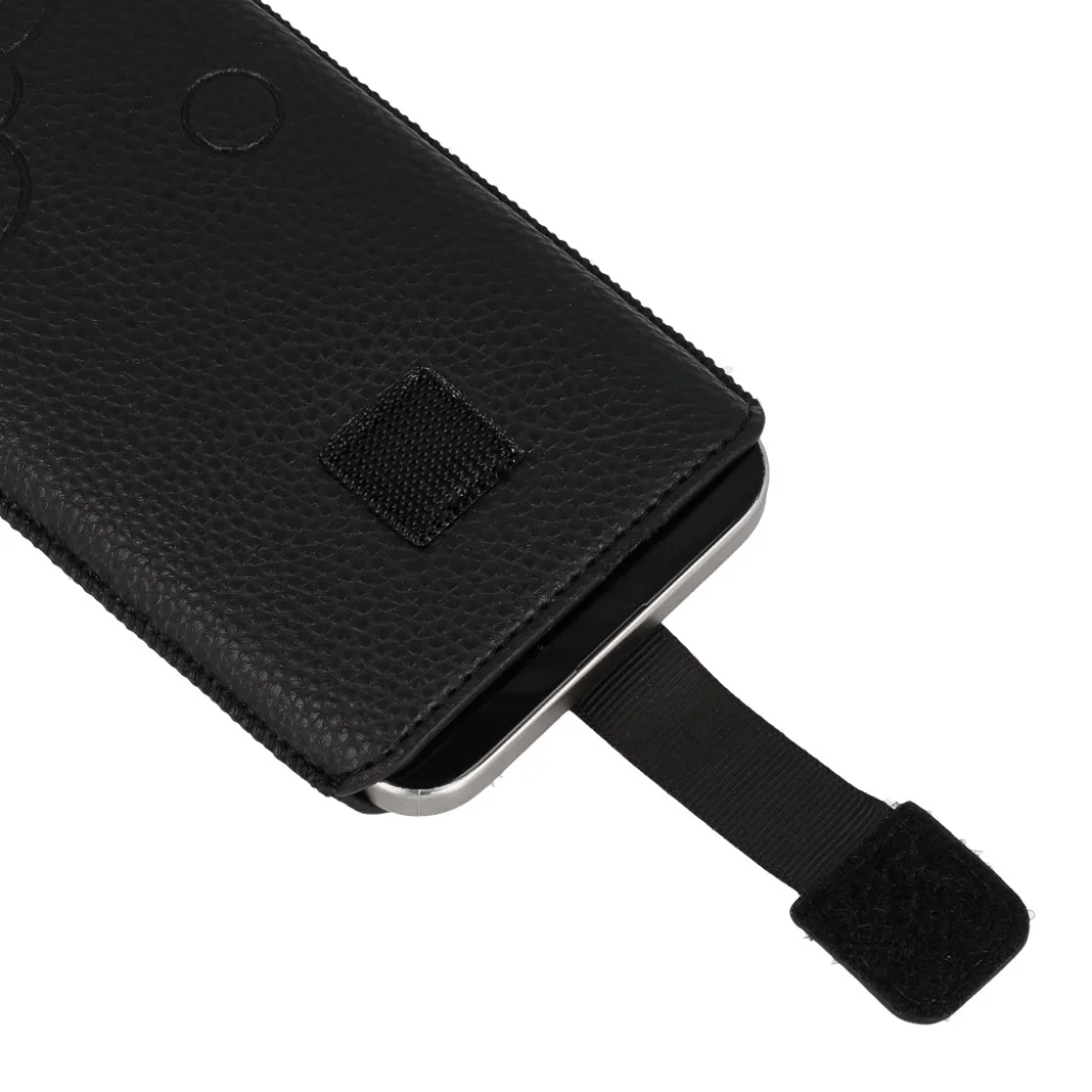 A telefon a tok tetejéről csúsztatható be, a tépőzáras zárás pedig megakadályozza, hogy az kicsússzon. A tok belsejében található PULL-UP szalag segítségével gyorsan és könnyedén kihúzhatja a telefonját. A kapcson található dombornyomott logó eleganciát kölcsönöz.