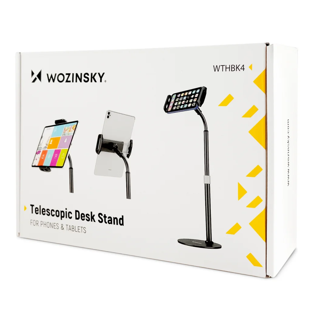 A Wozinsky WTHBK4 táblagép és telefonállvány az Ön magasságához igazodik – állítható teleszkópos karral rendelkezik.