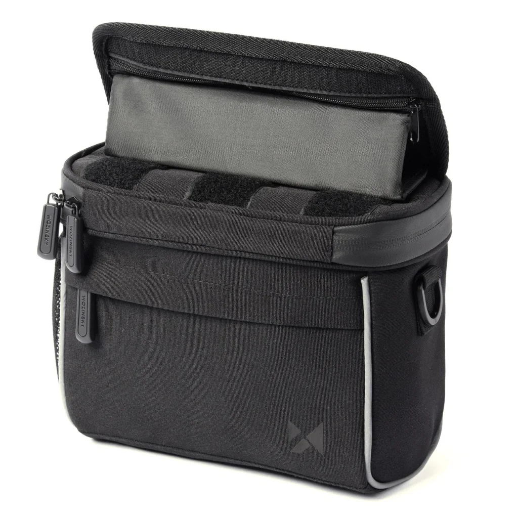 Egy kormányra akasztható biciklistáska, amely esőben és sötétben is használható A kis eső többé nem rontja el a biciklis kirándulást! A Wozinsky WBHBB-01 biciklises váll táska tartós anyagból készült, amely védelmet nyújt a nedvesség ellen. A két csúszkával ellátott laminált cipzár szintén vízálló. A kerékpáros váll táska az éjszakai biciklizés során is gondoskodik a biztonságodról. Elülső részén fényvisszaverő szegéllyel rendelkezik, amely visszaveri az autók fényét.