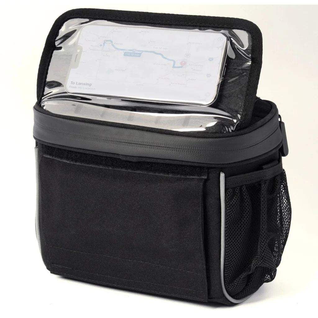 Kerékpár kormánytáska telefon számára speciális zsebbel a Wozinsky WBHBB-01 biciklis táska felső részén egy 10 x 19 cm-es átlátszó ablakos speciális zseb található. Ennek köszönhetően kényelmesen használhatod a navigációt vagy hallgathatod kedvenc zenéidet a kerékpározás közben. Az ablak erős és rugalmas TPU anyagból készült, amely véd a karcolásoktól és a portól. És ez még nem minden! A zseb 90 fokos szögben állítható, ami még kényelmesebbé teszi a telefon használatát. Fontos, hogy a zseb cipzárral és szellőzőnyílásokkal rendelkezik a hátulján, így szükség esetén gyorsan és egyszerűen kiveheted a telefont vagy csatlakoztathatod a kábelhez a fülhallgatót.