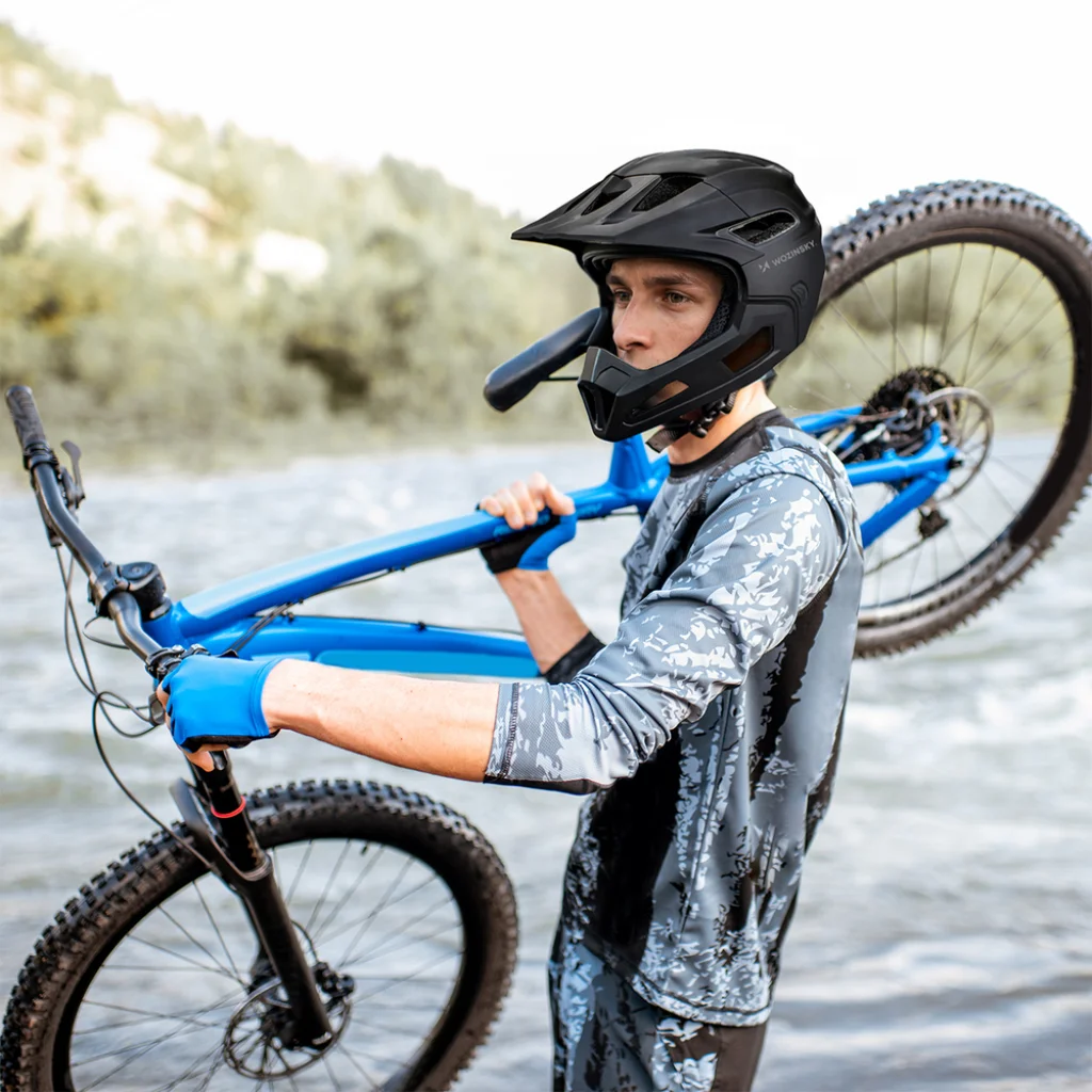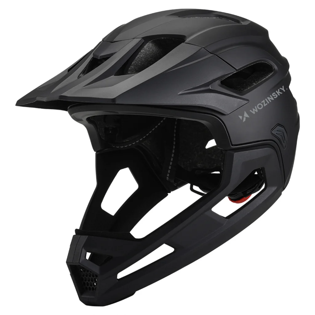 Wozinsky Könnyű Teljes Arcú Kerékpáros Bukósisak L - Fekete Ha a kétkerekű iránti szenvedélyed új ösvényekre, városi utcákra vagy hegyi szerpentinekre vezet, akkor a kerékpáros bukósisak nélkülözhetetlen társsá válik. A Wozinsky teljes arcú modell a legmagasabb szintű védelmet, kiváló szellőzést, egyéni állíthatóságot, könnyű szerkezetet és egyedi dizájnt ötvözi, biztosítva nemcsak a biztonságot, hanem a kényelmet is minden út során. Az integrált dizájn levehető állvédővel rugalmas használatot kínál – használhatod a teljes arcú védelmet vagy élvezheted a nagyobb szabadságot. ~ Műszaki adatok:- Márka: Wozinsky