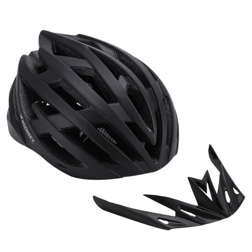 ~ Fejlett védelem A Wozinsky MTB sisakot úgy tervezték, hogy magas szintű biztonságot nyújtson a felhasználónak. Tartós felépítése hatékonyan oszlatja el az ütközési energiát, védve a fejet különféle vezetési körülmények között. Magas szintű szellőzés A speciálisan tervezett szellőrendszer állandó légáramlást biztosít, hűvösen és szárazon tartva a fejet, ami elengedhetetlen a hosszan tartó erőfeszítés során. Finom részletekben kidolgozott illeszkedés A csat pontos beállítási képessége lehetővé teszi a sisak tökéletes illeszkedését a fejhez, ami nem csak a kényelmet, hanem a védelem hatékonyságát is növeli bringázás közben. Biztonságot támogató funkcionalitás A levehető napellenző megvédi a szemed a naptól és a környezeti elemekkel szemben, amikor terepen haladsz, és a hátsó LED lámpa javítja a láthatóságot sötétedés után és nehezebb időjárási körülmények között. Kiemelkedő kialakítás A fekete szín és a dinamikus forma a Wozinsky MTB sisakot nemcsak gyakorlati darabbá teszi, hanem megkülönböztető kiegészítővé is a terepkerékpározás szerelmeseinek.