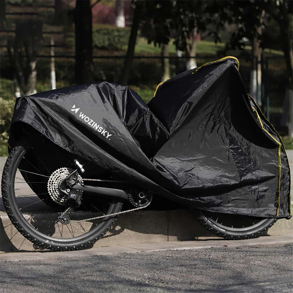 Wozinsky WPP-01O Porálló védőhuzat biciklikhez, rollerekhez és robogókhoz - Fekete. A Wozinsky WPP-01O huzat praktikus megoldás biciklid, roller vagy robogó por és fröccsenések elleni védelmére. Könnyű 190D poliészterből készült, amely segít megvédeni eszközöd, miközben a garázsban, pincében vagy az erkélyen tárolod. Nagy méretének köszönhetően könnyen illeszkedik a népszerű 24 és 27,5 hüvelyk, valamint 700C méretű kerekekkel rendelkező biciklikre. Könnyű súlya és összehajtható kialakítása miatt a huzat kényelmes a mindennapi használatra és könnyen tárolható. Egyszerű módja az eszköz tisztán tartásának.