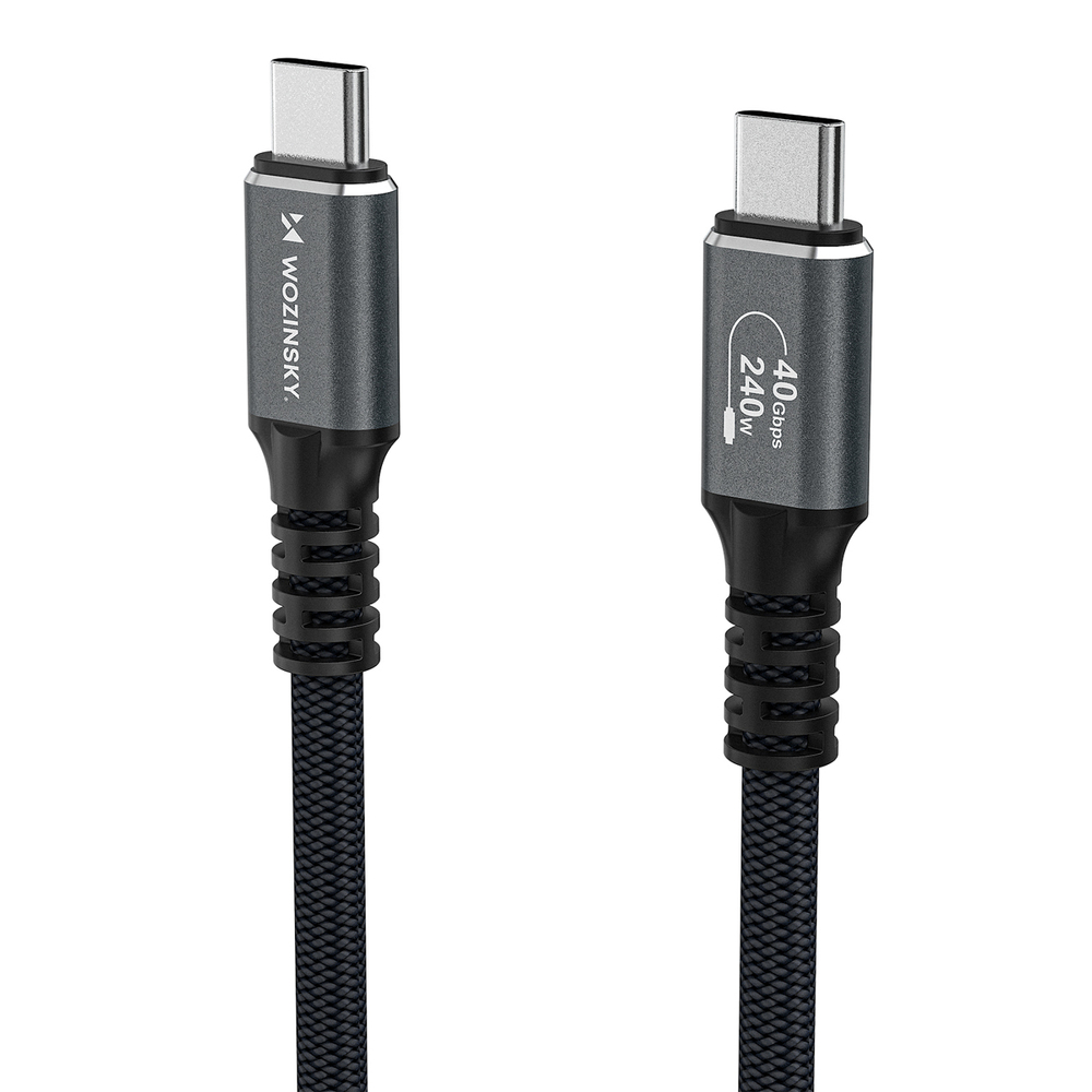 Wozinsky WPS-UY42S USB-C Thunderbolt 4 Kábel 240W 2m 4K - Fekete A Wozinsky WPS-UY42S egy prémium Thunderbolt 4 kábel, amely akár 240 W töltési támogatást és ultra-gyors adatátviteli sebességet kínál, akár 40 Gb/s-ig. Professzionális felhasználók számára tervezték, video támogatást biztosít akár 8K@60Hz felbontásig, és teljes kompatibilitást biztosít a Thunderbolt 4, Thunderbolt 3, USB4 és USB-C PD portokkal. Ideális laptopokhoz, monitorokhoz, dokkoló állomásokhoz, tabletekhez, valamint a legújabb iPad és MacBook modellekhez. Tartós anyagokból készült – alumínium ház és sűrű nejlon fonás – maximális megbízhatóságot és kopásállóságot biztosít. Specifikáció:
