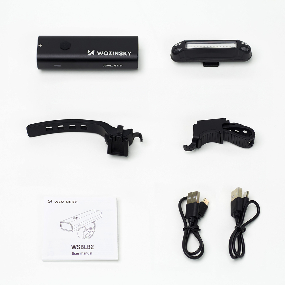 Wozinsky WSBLB2 első (400 lm) és hátsó USB-C kerékpár lámpa szett - fekete