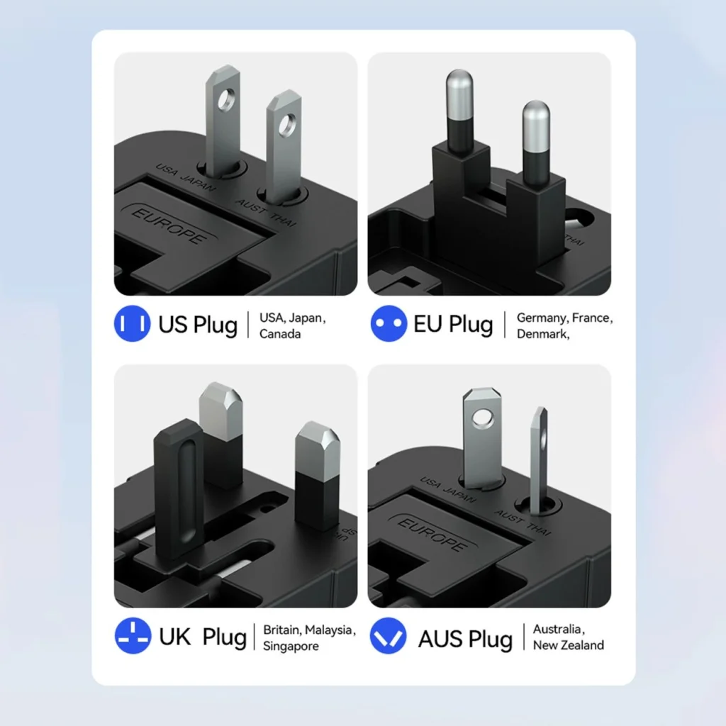 - Lehetővé teszi, hogy több mint 150 országban használjuk az elektronikát. Az adapter támogatja az EU, USA, AUS és UK energia szabványait.