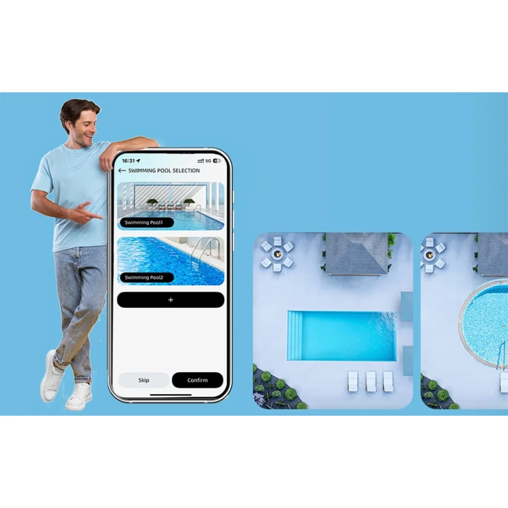 A WYBOT alkalmazással a robot beállításait az Ön igényeihez igazíthatja. Kiválaszthatja a medence alakját, beállíthatja a tisztítási útvonalat, és kiválaszthatja a rendelkezésre álló üzemmódok egyikét. Ráadásul a C1 Max kézi vezérlési funkciót is kínál, amellyel pontosan a kívánt helyekre irányíthatja a készüléket.