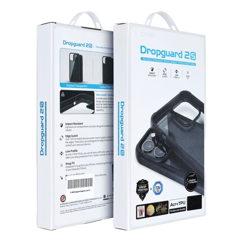 X-One Dropguard Magnetic 2.0 egy tok, amely magas minőségű anyagok (TPU és PC) és gondos kidolgozás révén tartós védelmet nyújt okostelefonjának. A megerősített szélek megvédik a telefon peremeit, a kamera sziget körüli fém keret pedig megóvja a készülék hátuljának érzékeny pontját. Fontos szempont, hogy a tok támogatja a MagSafe mágneses vezeték nélküli töltést A Dropguard Magnetic 2.0 tok átfogó védelmet nyújt a telefonnak az esések és karcolások hatásaival szemben. A megerősített sarkokkal rendelkező, rugalmas keret puha TPU-ból készült, amely védi a készülék széleit. A matt PC hátlap rendkívül tartós, és fém kerettel rendelkezik a kamera sziget védelme érdekében. Az esztétikus kivágások a portokhoz és gombokhoz nem korlátozzák az okostelefon funkcionalitását, és a mágnes technológiát támogató gyűrű lehetővé teszi a vezeték nélküli töltő kényelmes használatát.