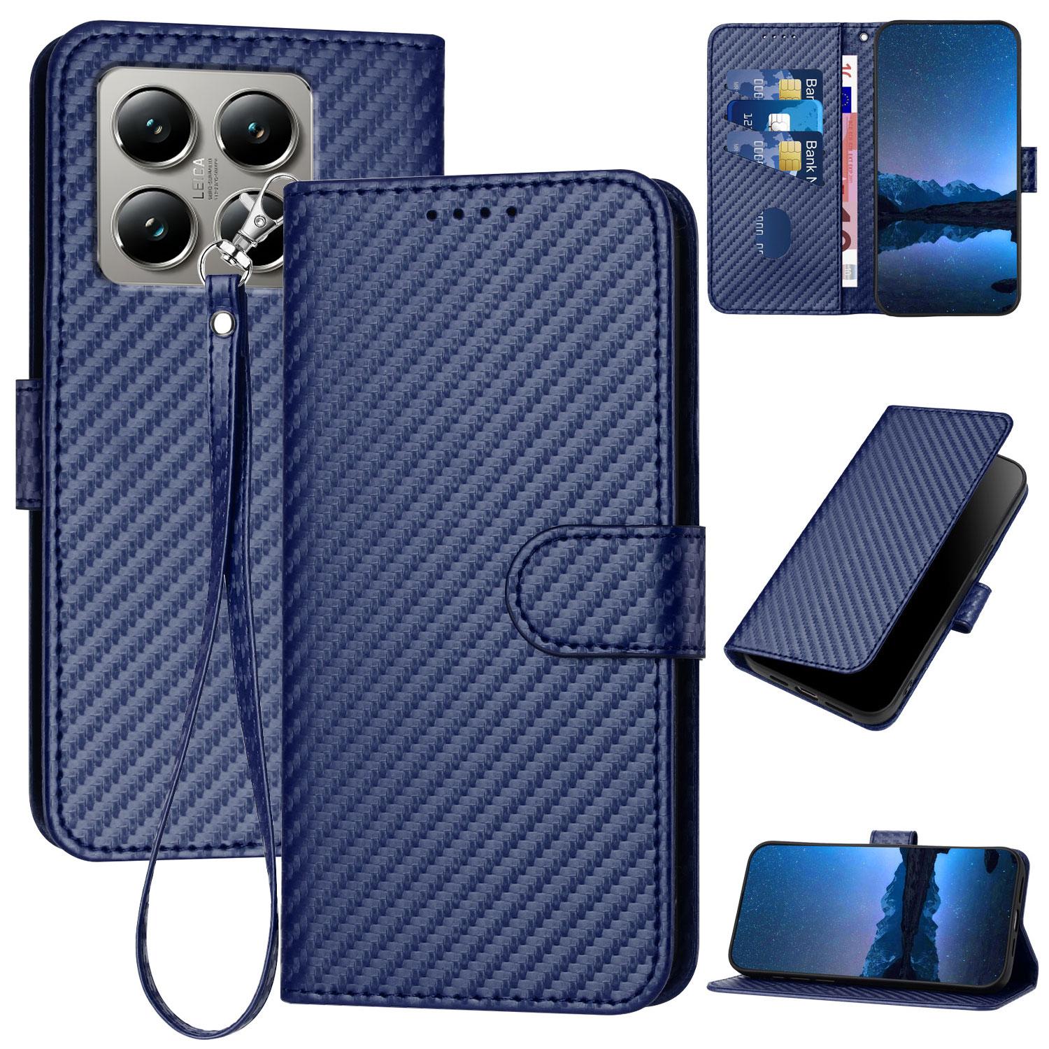 Xiaomi 15T karbon mintás flip bőrtok csuklópánttal – kék