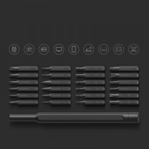 Xiaomi Mijia csavarhúzó 24 az 1-ben többmágneses csavarhúzókészlet 24 precíziós csavarhúzó bittel, összesen 9 típus, különféle modellek, amelyek alkalmazkodnak a különböző mindennapi használathoz. Kifinomult dizájn: Rozsdamentes alumíniumötvözet csavarhúzó markolat, sima ívelt él a kényelmes fogásért. Homokfúvott felületű anód kezelés, izzadás- és korrózióálló. Élvezetes élmény használat közben. Minden egyben: A legtöbb mindennapi javítási igényt kielégíti, alkalmas kvarcórákhoz, hétköznapi háztartási készülékekhez, például kamerákhoz, rádiókhoz, számítógépekhez, mobiltelefonokhoz, drónokhoz stb. Alumíniumötvözet nyél: A csavarhúzókészlet alumíniumötvözet markolatot tartalmaz speciális kezeléssel, forgatható sapka kialakítással, amely kényelmes használati élményt nyújt.