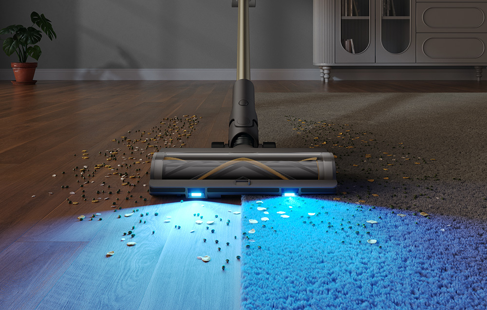 LED kefe világításTisztítsd meg alaposan a gyengén megvilágított területeken is. A kék LED háttérvilágítás, amelyet az univerzális kefe használ, széles, 138°-os szögben sugároz fényt. Ez megkönnyíti az ágy alatti, kanapén, szekrényben és más nehezen elérhető helyek porszívózását. A kék LED-ek olyan hullámhosszú fényt bocsátanak ki, amely kis részecskéket, például port, szőrszálakat és hajszálakat is észlelhet.