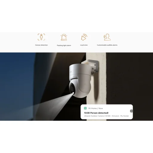 Ez a kamera nem csak megfigyel, hanem cselekszik is. Ha illetéktelen személyt észlel a megfigyelt területen, automatikusan egy magas frekvenciájú villogó fénnyel és egy hangos, testreszabható szirénával próbálja meg elriasztani a behatolót. Ezzel egy időben azonnali riasztási üzenetet továbbít a Mi Home/Xiaomi Home alkalmazásba.