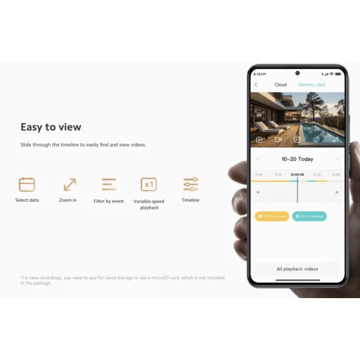 A csomagban található konzol segítségével a kamera rögzíthető mennyezetre, oldalfalra, vagy akár egy oszlopra is. A Mi Home alkalmazás megújult felületén pedig rendkívül egyszerű a videók visszanézése: szűrhet eseményekre, kiválaszthatja a dátumot, belenagyíthat a képsorokba, vagy egy könnyen kezelhető idővonalon gyorsíthatja a lejátszást. A rendszer támogatja az Amazon Alexa és a Google Assistant hangvezérlést is.