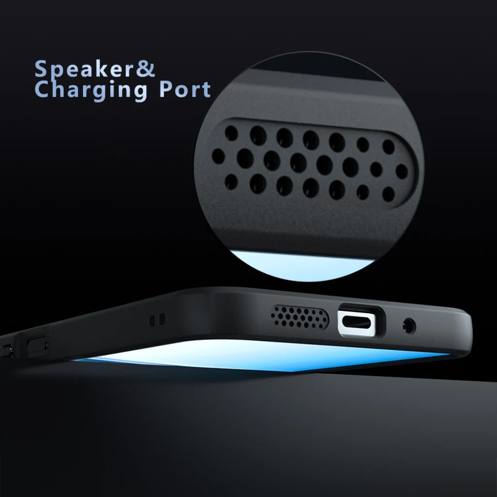 - Precíz illeszkedés: Minden kivágás, legyen szó a töltőportról, hangszórókról vagy mikrofonról, tökéletesen illeszkedik, biztosítva a zavartalan használatot. Az oldalsó gombok könnyen elérhetők és kényelmesen kezelhetők.
