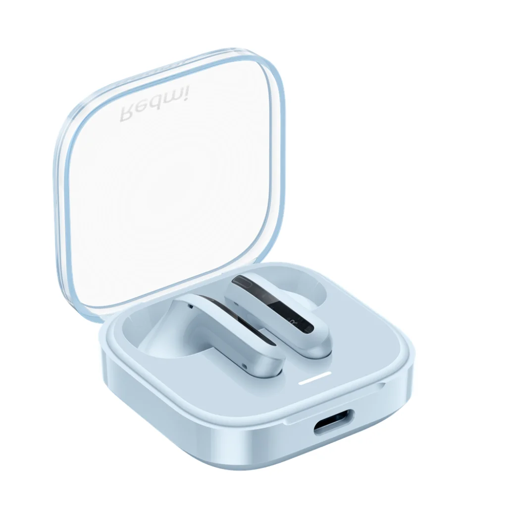 A Redmi Buds 6 Active letisztult, modern esztétikájával és figyelemfelkeltő áttetsző kék színével azonnal kitűnik. A kompakt töltőtok nemcsak praktikus, hanem dizájnos is: áttetsző fedele lehetővé teszi, hogy rápillantva ellenőrizze fülhallgatói helyzetét, miközben a tok alján található "Redmi" logó is láthatóvá válik. Az ergonómikus, félig nyitott (half in-ear) kialakításnak köszönhetően a fülhallgatók kényelmesen és stabilan illeszkednek, így órákon át viselhetők nyomás vagy kényelmetlenség nélkül, legyen szó sportolásról, utazásról vagy mindennapi használatról.