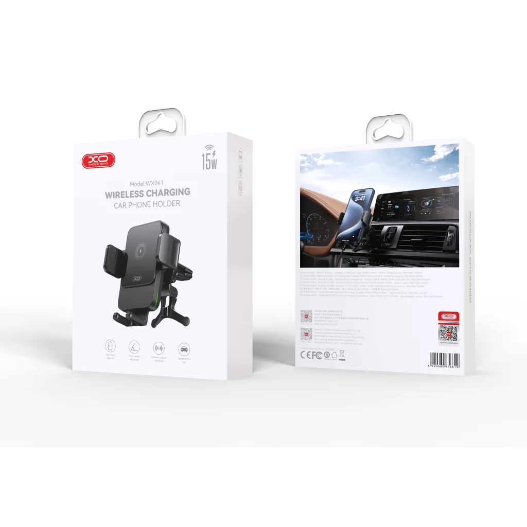 XO autós telefontartó WX041 vezeték nélküli induktív töltővel 15W fekete szellőzőrács