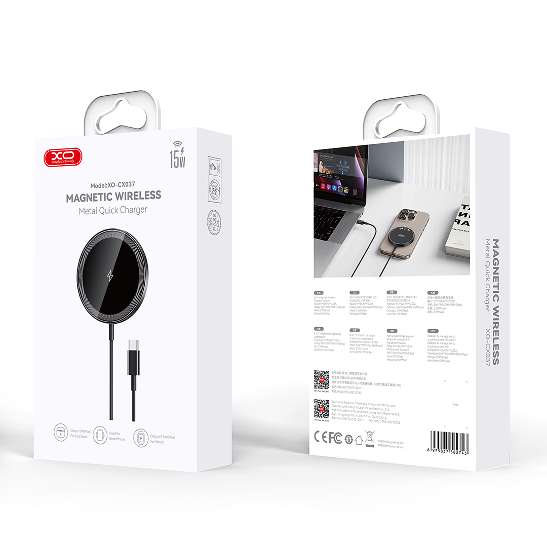 Az XO CX037 egy mágneses, fém vezeték nélküli töltő, amely 3 az 1-ben funkcióval kifejezetten iPhone-okhoz készült. Akár 15W töltési teljesítményt kínál, biztosítva a gyors és hatékony energiafeltöltést. A csomagban egy 1,2 méter hosszú kábel található, amely kényelmet biztosít a töltés során. A töltő három funkciót kombinál, lehetővé téve az iPhone, a fejhallgató és az óra egyidejű töltését. Az elegáns fém dizájn tartósságot és stílust garantál. A mágneses rögzítés biztosítja az eszközök stabilitását és pontos illeszkedését a töltés alatt.