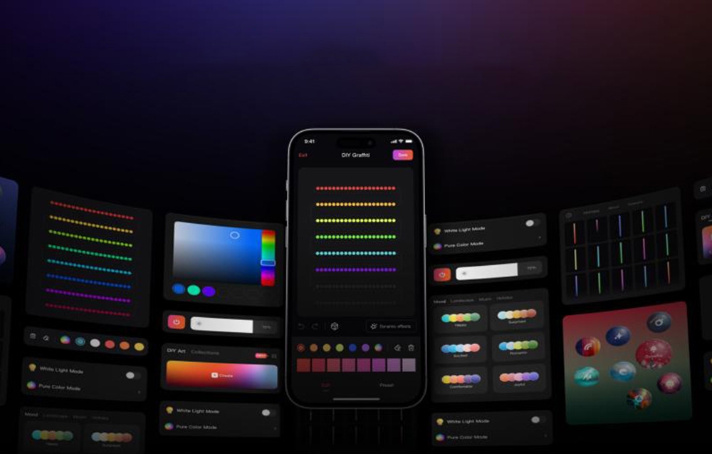 A Yeelight alkalmazásból megváltoztathatja a színeket, a fényerőt, a mintákat és az effekteket. Az intuitív kezelőfelület lehetővé teszi, hogy gyorsan beállítsa a fényeket a hangulatának, az alkalomnak és a preferenciáinak megfelelően.