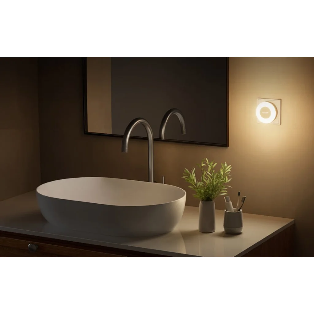 Automatikus működés: A beépített fényérzékelő miatt a lámpa automatikusan bekapcsol, ha a környezeti fényerő 2 lux alá csökken, és kikapcsol, ha az érték 13 lux fölé emelkedik. Ennek eredményeképpen nem kell kézzel működtetnie a készüléket, így kényelmesebb az éjszakai WC- vagy konyhalátogatások során.