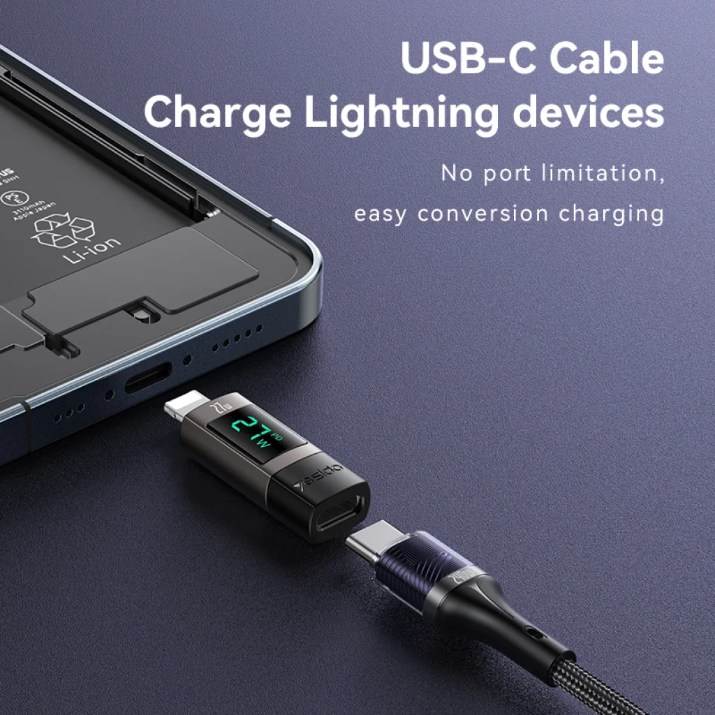 Bemutatjuk a Yesido GS25 digitális adaptert, amely forradalmasítja a Lightning portos eszközeid töltését és adatátvitelét. Ez a kompakt és sokoldalú adapter lehetővé teszi, hogy Type-C kábellel töltsd és szinkronizáld iPhone-odat vagy más Lightning eszközedet, miközben valós időben követheted a töltési teljesítményt az beépített LCD kijelzőn.