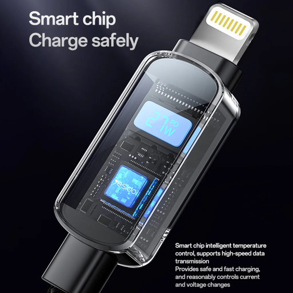 - Intelligens chip a biztonságért: A Yesido CA180 kábelben található okos chip intelligens hőmérséklet-szabályozást és stabil töltést biztosít. Hatékonyan kezeli az áram- és feszültségváltozásokat, így megbízhatóan védi készülékeit a túltöltéstől és a lehetséges károsodásoktól.