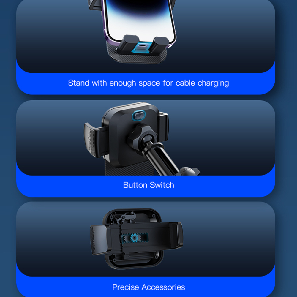 - Széleskörű kompatibilitás: Az állítható alsó támaszték akár 2 cm-rel is kihúzható, így a legtöbb okostelefon méretéhez illeszkedik, függetlenül annak márkájától vagy modelljétől. Az "Auto Extending Clip Design" funkciónak köszönhetően a telefon behelyezése rendkívül egyszerű és gyors.