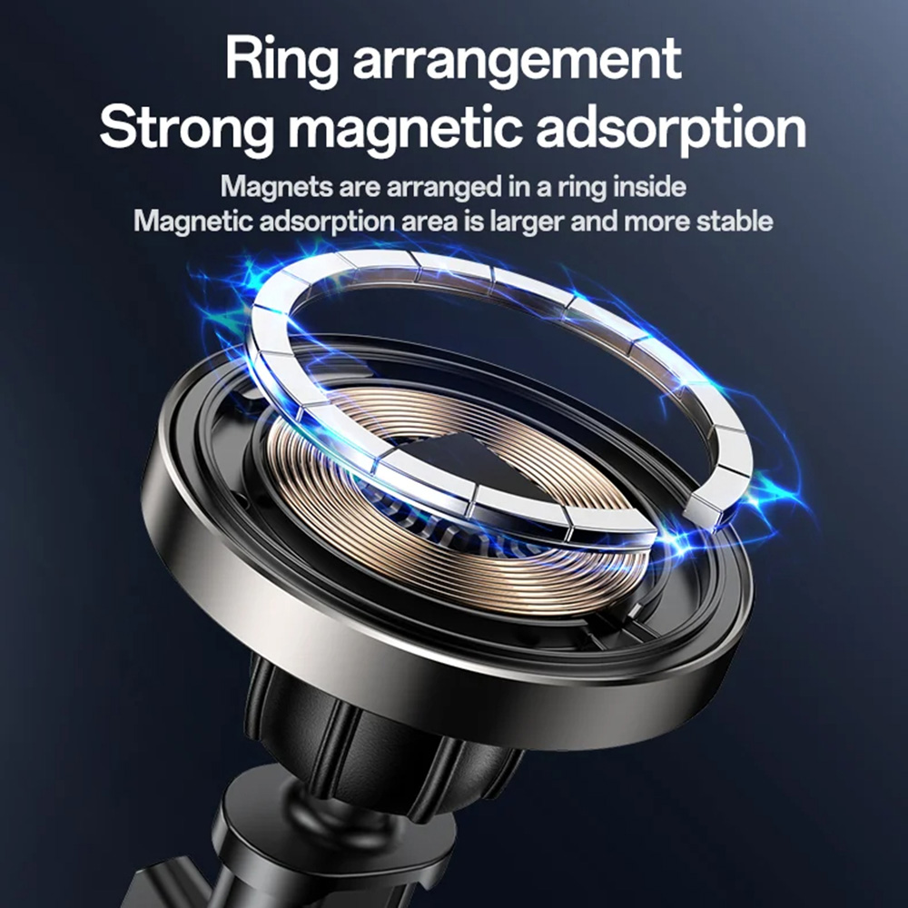 - Erős mágneses adszorpció: A belsőleg, gyűrű alakban elrendezett mágnesek stabil és erőteljes tapadást biztosítanak. A megnövelt mágneses adszorpciós terület garantálja telefonja biztonságos tartását még rázós útfelületen vagy hirtelen fékezéskor is.