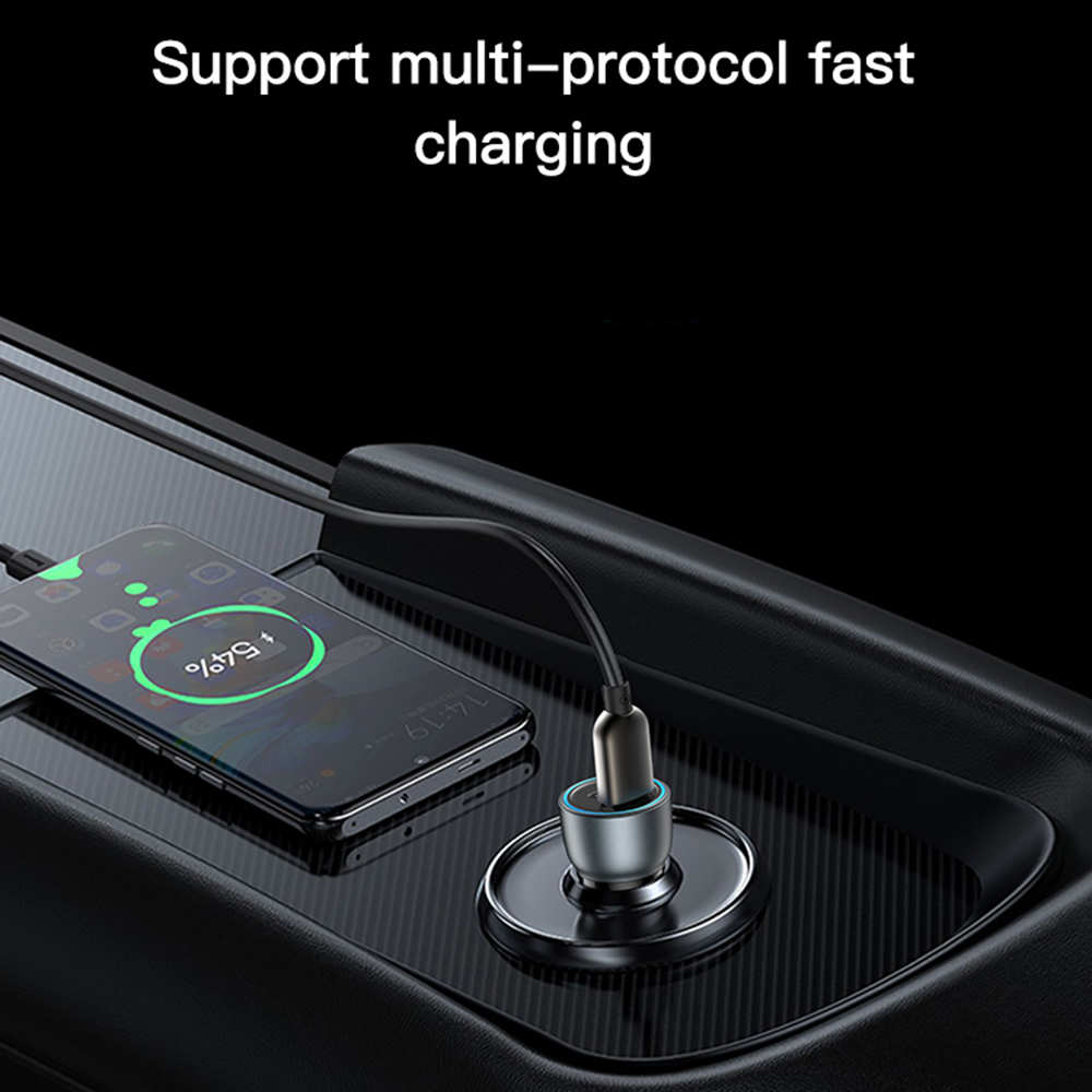 Ez a töltő nemcsak a teljesítményben jeleskedik, hanem a megjelenésében is. A felső rész elegáns alumínium ötvözetből készült, míg az alsó átlátszó PC+ABS műanyag feltárja a belső, precíziós áramköri lapot, modern és futurisztikus megjelenést kölcsönözve. A szürke és átlátszó barna színkombináció tökéletesen illeszkedik bármely autó belső terébe. A kék LED fényhatás nem csupán esztétikai elem; diszkréten megvilágítja a töltőportokat, megkönnyítve a használatát sötétben, és stílusos atmoszférát teremt az utastérben. Kompakt méretének (6.5 cm hosszúság) köszönhetően diszkréten illeszkedik a szivargyújtó aljzatba, nem zavarja a vezetőt.