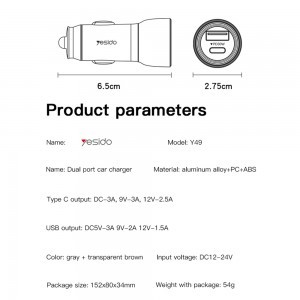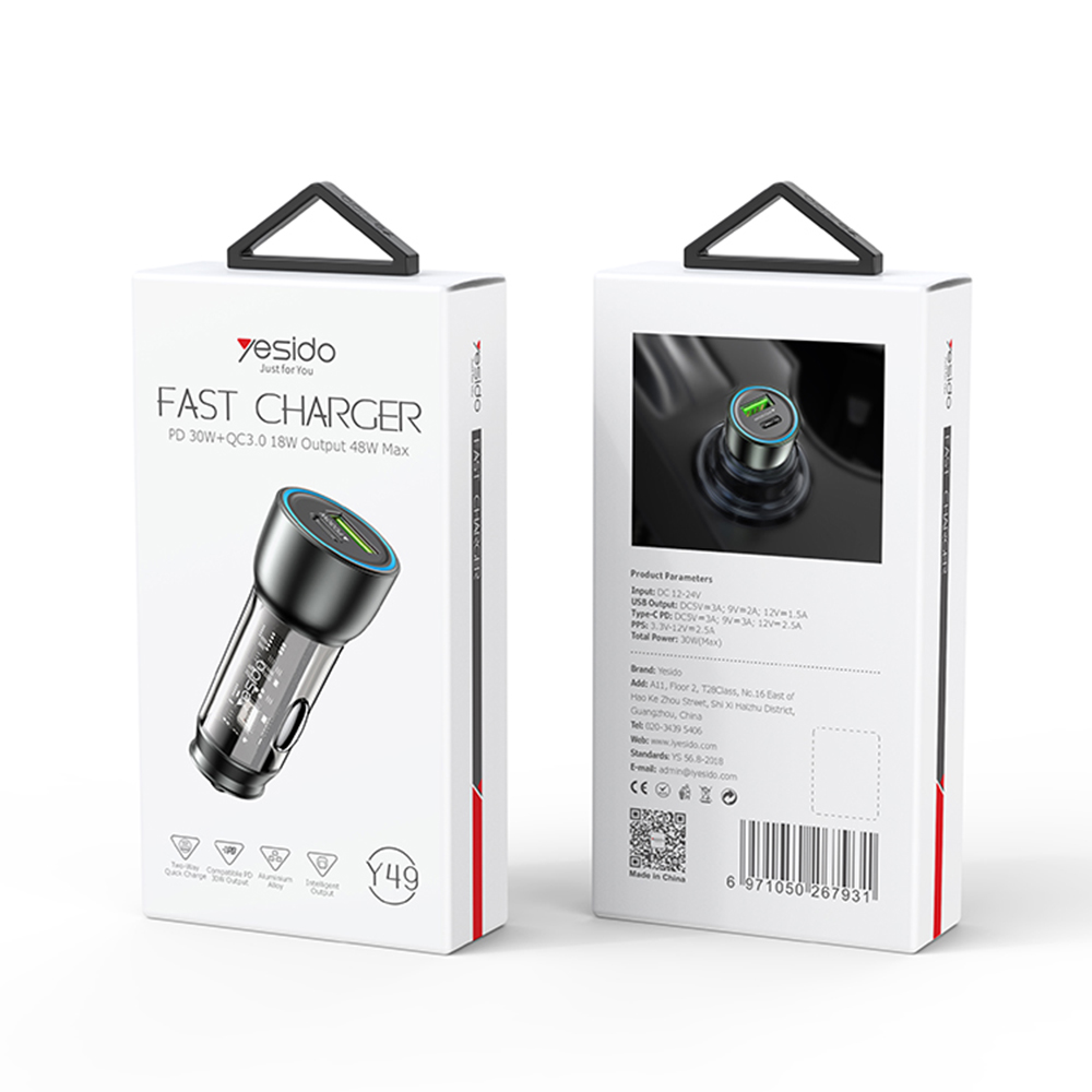 Tegye még okosabbá autóját a Yesido Y49 autós töltővel, amely a modern technológia, az elegáns design és a kiemelkedő teljesítmény tökéletes ötvözete. Ez a kompakt, mégis erőteljes töltő biztosítja, hogy készülékei mindig tele legyenek energiával, bármilyen hosszú is az út.