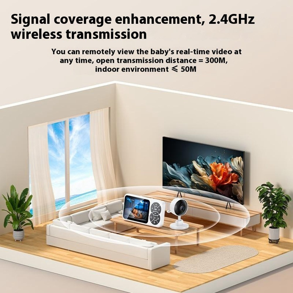 A 2.4GHz-es vezeték nélküli technológia stabil és megbízható kapcsolatot biztosít a kamera és a monitor között. Élvezze a megnövelt hatótávolságot: nyílt terepen akár 300 méteres, beltéri környezetben pedig 50 méteres hatótávolságban is figyelemmel kísérheti gyermekét, miközben szabadon mozoghat otthonában.