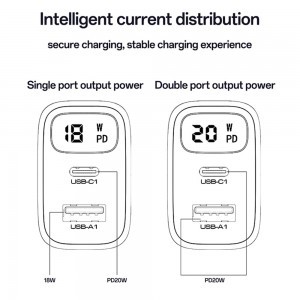 A Yesido YC68 töltő a legújabb technológiával készült, hogy készülékeid a lehető leggyorsabban töltsenek fel. A 20W-os Power Delivery (PD) technológiának köszönhetően pillanatok alatt visszatérhet az élet a lemerült telefonodba vagy tabletedbe. Ráadásul az integrált digitális kijelző folyamatosan mutatja a kimeneti teljesítményt, így pontosan tudhatod, mennyi energiát kap éppen az eszközöd.