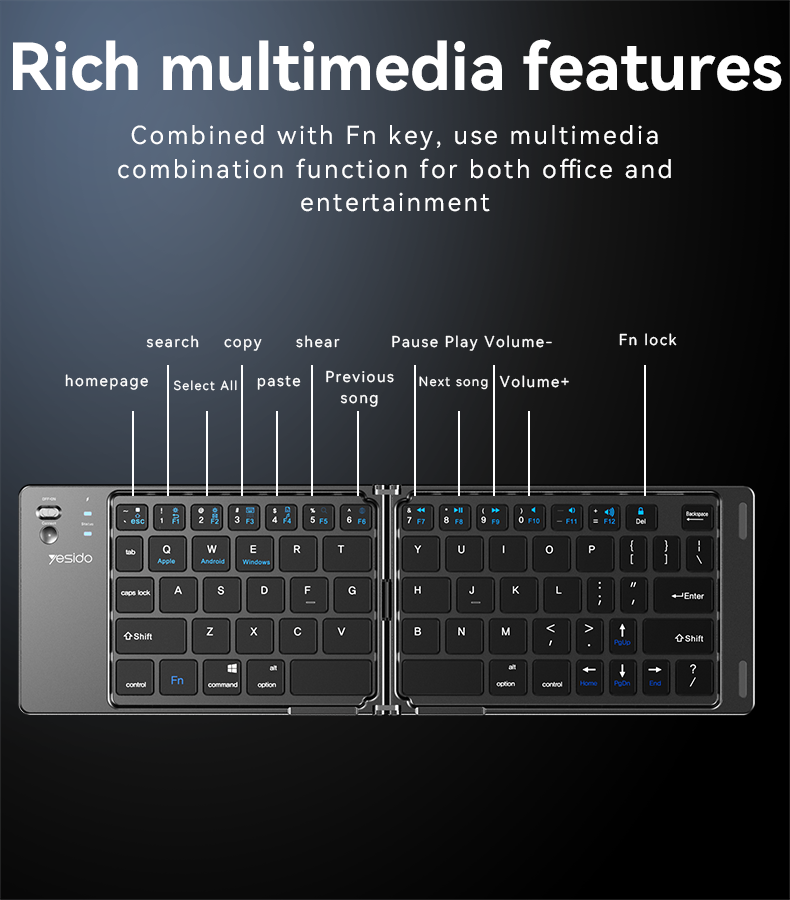 Akciós! Yesido billentyűzet KB27 vezeték nélküli összecsukható fekete 7 200 Ft10700 Ft (33%) Termék adatlap
