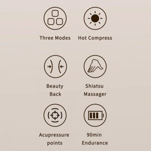 - Shiatsu dagasztó technológia: A puha, "szilvaszerű" masszázsfejek gyengéden, mégis hatékonyan gyúrják át a feszült területeket, utánozva a professzionális shiatsu masszázst.