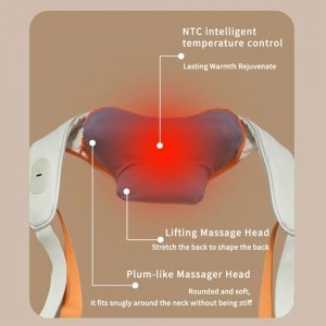 Az integrált NTC intelligens hőmérséklet-szabályozású hőterápia nagy felületen biztosít állandó, kellemes meleget a váll és a nyak területén. Ez a mélyreható meleg enyhíti az izommerevséget, fokozza a vérkeringést és felgyorsítja a regenerációt. A készülék shiatsu dagasztó masszázsfejei precízen célozzák az akupresszúrás pontokat, mint a Dazhui, trapezius, Jianjing, rombuszizmok és Fengmen, így intenzív és hatékony enyhülést nyújtanak a fájó és feszült területeken.