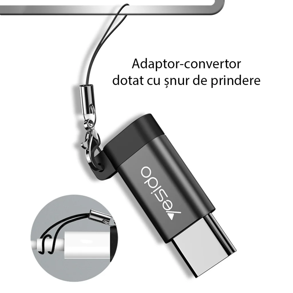 A Yesido OTG adaptert a hordozhatóság és a könnyű használat jegyében tervezték. Kompakt méreteinek (kb. 2.5 cm x 1.2 cm x 0.8 cm) köszönhetően könnyedén elfér zsebben, pénztárcában vagy kulcstartón. A beépített szíj és karabiner lehetővé teszi, hogy egyszerűen rögzítse kulcscsomójára vagy kábelére, így mindig kéznél lesz, amikor szüksége van rá. Stílusos fekete színével és minimalista dizájnjával bármilyen eszközhöz jól illeszkedik.