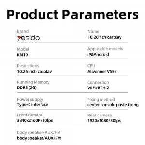A Yesido KM19 rendkívül egyszerűen telepíthető a középkonzolra ragasztva, és a Plug&Play kialakításnak köszönhetően pillanatok alatt üzemkész. Nincs szükség bonyolult kábelezésre, szakember segítségére vagy az autó gyári rendszerének megbontására, mindössze egy Type-C tápcsatlakozásra van szüksége.