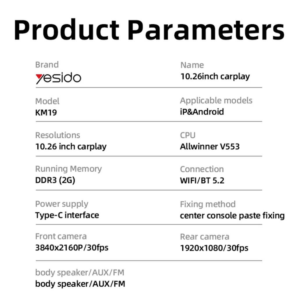 A Yesido KM19 rendkívül egyszerűen telepíthető a középkonzolra ragasztva, és a Plug&Play kialakításnak köszönhetően pillanatok alatt üzemkész. Nincs szükség bonyolult kábelezésre, szakember segítségére vagy az autó gyári rendszerének megbontására, mindössze egy Type-C tápcsatlakozásra van szüksége.