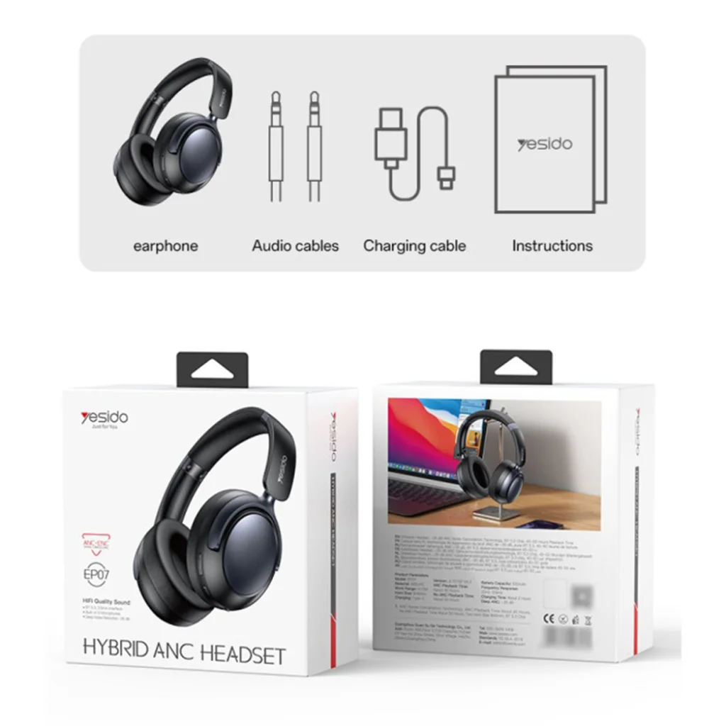 Merüljön el a zene világában a Yesido EP07 vezeték nélküli fejhallgatóval! Ez a stílusos és kényelmes, fekete színű fejhallgató a legmodernebb technológiákat ötvözi, hogy Ön zavartalanul élvezhesse kedvenc tartalmait, bárhol is járjon. A hibrid aktív zajszűrés (ANC), a kristálytiszta hívásokat biztosító ENC technológia és a lenyűgözően hosszú akkumulátor-üzemidő garantálja, hogy a Yesido EP07 ideális társává váljon a mindennapokban.