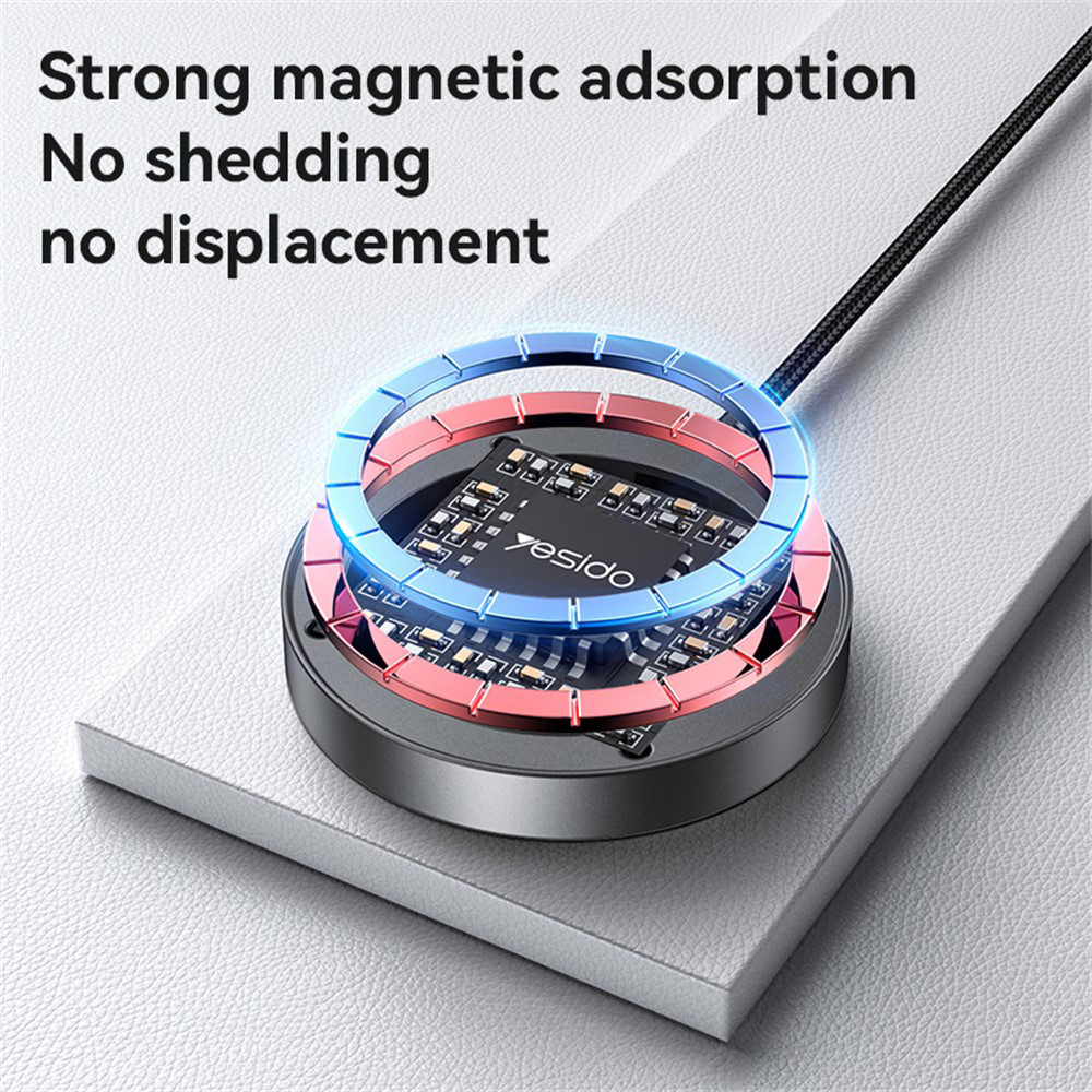 A beépített erős mágnesek garantálják a Yesido DS28 stabil és biztonságos rögzítését a kompatibilis készülékekhez, például iPhone-okhoz (MagSafe kompatibilis) vagy más, mágneses tartóval ellátott telefonokhoz. Nincs többé véletlen elcsúszás vagy leesés! A mágneses adszorpciónak köszönhetően telefonja töltés közben is mozdulatlan marad, így kényelmesen játszhat, videókat nézhet vagy böngészhet.