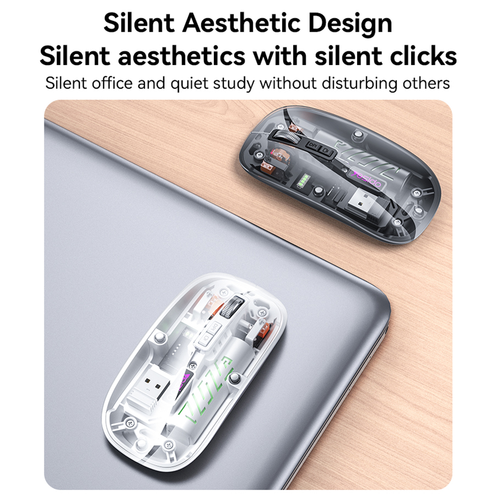 Ismerje meg a Yesido KB29 vezeték nélküli egeret, amely a modern technológiát és a letisztult dizájnt ötvözi a maximális kényelemért és hatékonyságért. Ez az áttetsző, "kristály egér" innovatív megjelenésével nem csupán egy eszköz, hanem stílusos kiegészítője is lehet asztalának. A fekete szín elegáns megjelenést kölcsönöz neki, miközben bepillantást enged belső, precízen elrendezett alkatrészeibe.
