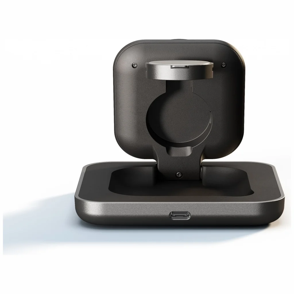 A töltő kiváló minőségű cinkötvözetből készült, amely tartósságot és stabilitást biztosít használat közben. Az Apple StandBy mód támogatása lehetővé teszi, hogy iPhone-ját praktikus kijelzővé alakítsa – használhatja óraként, naptárként vagy widgetek megjelenítésére közvetlenül az éjjeliszekrényen. Az Apple Watch töltőmodul támogatja a gyors töltést akár 5 W teljesítménnyel, a teljes egységet pedig a csomagban található hatékony 45 W-os adapter látja el árammal. A kompakt és összecsukható kialakításnak köszönhetően a töltő utazáshoz is ideális.