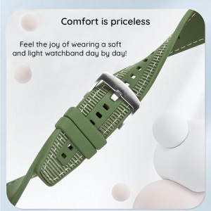 A Techsuit óraszíj a funkcionalitást és az esztétikát ötvözi a legmagasabb szinten. A belső réteg puha, hipoallergén szilikonból készült, ami egész napos kényelmes viseletet biztosít, anélkül, hogy irritálná a bőrt. A külső felület különleges, finoman bordázott textúrát kapott, mely egyedi és elegáns megjelenést kölcsönöz az órának, ugyanakkor rendkívül strapabíró és ellenálló. Ez a könnyed és rugalmas anyag garantálja, hogy alig fogod érezni a csuklódon, mintha a részeddé válna.